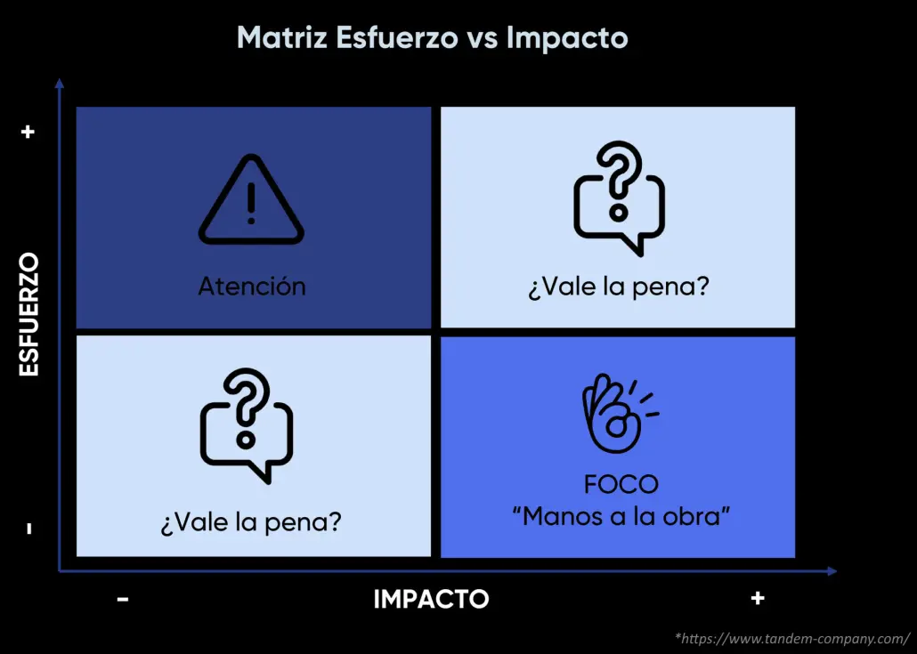 Se priorizará la ejecución de proyectos de ganancias rápidas (alto impacto y bajo esfuerzo)